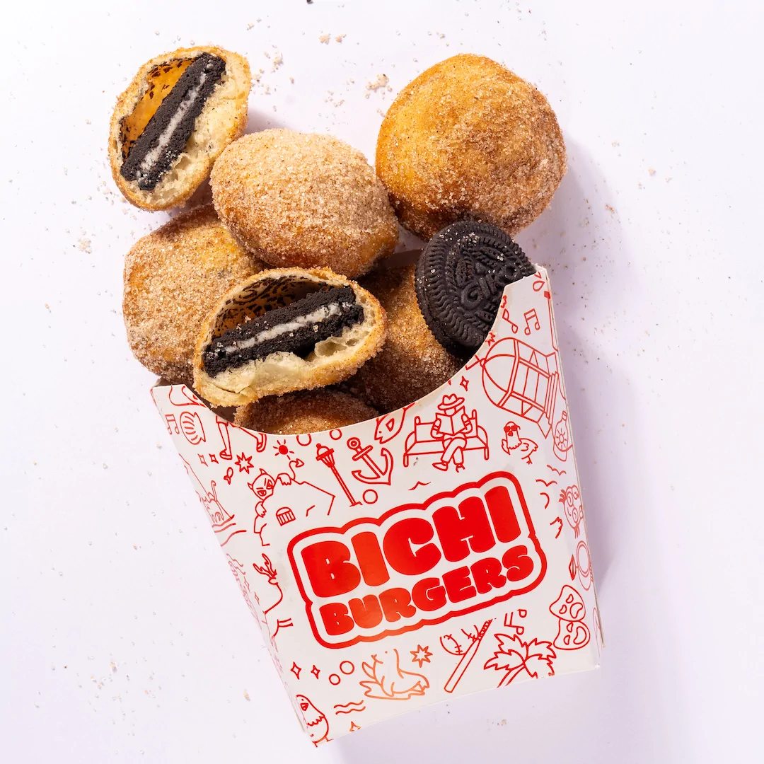 Riquísimas galletas oreo envuelta masita casera con dorada tipo churro, espolvoreadas con un toque de canela y azúcar. Acompañada de lecherita nestlé